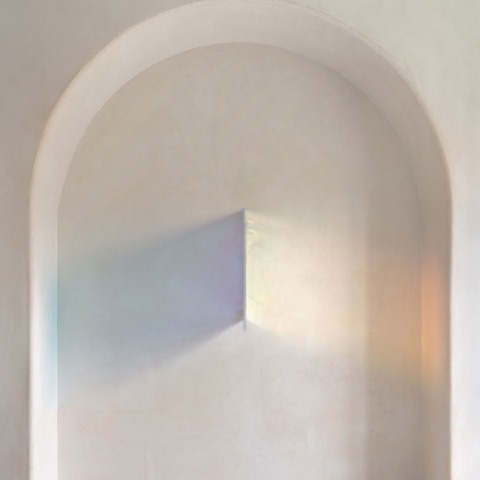 El cuidado por los detalles y las texturas conecta a ambas creadoras. Gorostegui no sólo capta la esencia de la Casa Ola a través de las fotografías, sino que utiliza materiales presentes en el espacio y los convierte en soportes y partes de su propia obra, como el mortero de arena de playa de algunos marcos y el papel iriscente de los juegos de luces. De esta forma se establece un diálogo delicado entre la casa construida y el retrato fotográfico, mucho más allá de la mera representación de un espacio proyectado. Gorostegui nos invita a activar los sentidos y disfrutar de la plasticidad de la arquitectura tal y como nos proponía Gaston Bachelard en la Poética del espacio, con la luz como principal protagonista.