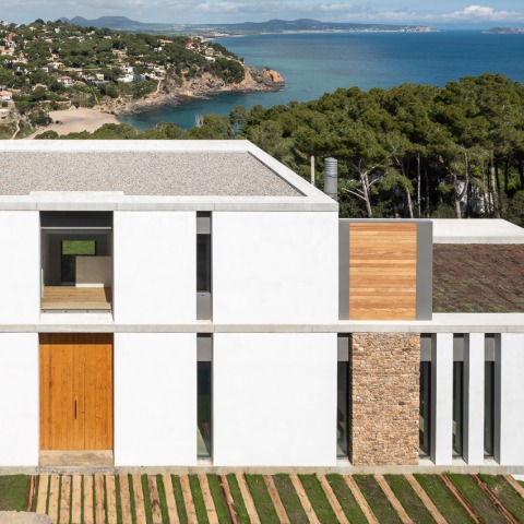 En un terreno en pendiente resolvemos la casa buscando posicionarla en el punto más alto de la parcela para disfrutar de las mejores vistas, hacia la cala de Sa Riera y las Islas Medas.