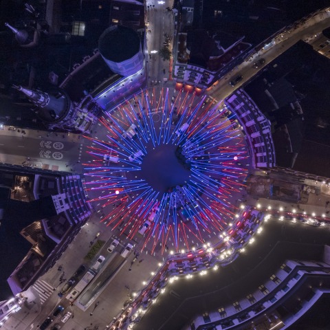 IRIS es un diseño específico por encargo del Ayuntamiento de Madrid para la Plaza Canalejas, una plaza urbana perfectamente circular con un diámetro de 50 m en el centro histórico de Madrid.