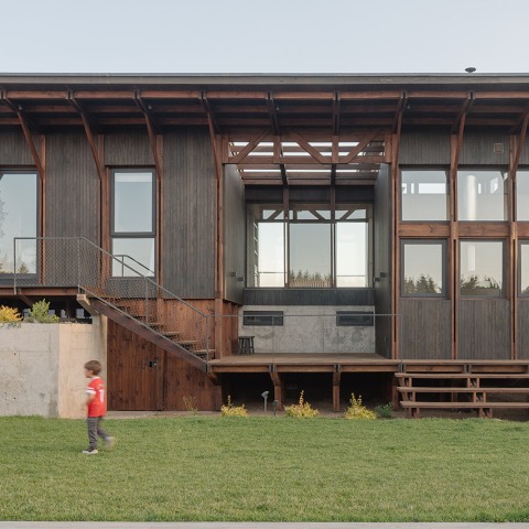 El uso de la madera en la estructura portante y la esbeltez de los pilares de la vivienda le otorgan ligereza y calidez. Para acelerar el proceso de obra y reducir el impacto medioambiental, se emplearon pre-armados que facilitaron el montaje de la modulación. Además, los materiales utilizados son de fabricación nacional y cercana a la obra.
