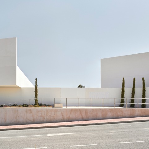 El proyecto resuelve la implantación en la parcela ajustándose a su perímetro para crear un gran jardín en el interior. La edificación busca armonizar con la topografía, acompasándose a las rasantes del terreno natural. Es una arquitectura con voluntad de expresarse como un todo, cuya plasticidad viene dada por sus proporciones horizontales y su materialidad blanca.