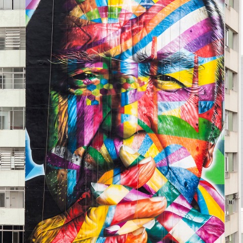 Eduardo Kobra es un artista callejero brasileño exponente de la neovanguardia de Sao Paulo, regreso a su ciudad para realizar un proyecto de gran escala en Brasil. La pieza de 52 metros de altura cubre todo el lateral de una torre de viviendas en la Avenida Paulista, una de las calles más concurridas de Sao Paulo, y es un homenaje de Kobra al arquitecto Oscar Niemeyer, quien falleció el pasado mes de diciembre a la edad de 104.