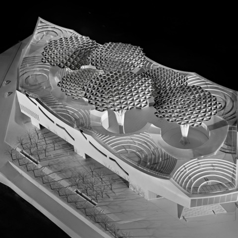Topológicamente, se podría hacer referencia a otro proyecto previamente ya elaborado por el estudio en el concurso para el Centro de Artes Escénicas en Taipei (2009). En este proyecto se habla sobre los orígenes de la humanidad y la costumbre de las personas de agruparse en círculos alrededor de otros que hablaban, cantaban y conversaban; si era posible alrededor de un árbol. La geometría del conjunto podría entenderse como un bosque tropical formado por una estructura estratificada, al mismo tiempo que utiliza estrategias medioambientales y constituye un esquema funcional. Entre los árboles, la cubierta se desdobla para proteger del sol y la lluvia, proponiendo un nuevo paisaje de cubiertas accesibles, con vistas a la ciudad.