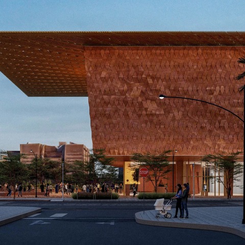 El proyecto de Kéré tiene un dosel que se proyecta sobre su entorno, alargándose sobre la plaza de entrada y generando un área de sombra especial. Una gran escalera de entrada curva recorrerá el centro del museo y será visible desde los ventanales del edificio, convirtiendo el núcleo interior en un cañón desde el cual los visitantes ascenderán hacia galerías que parecen flotar en el segundo piso. El arquitecto se ha asociado con Skidmore, Owings & Merrill (SOM) como arquitecto registrado.