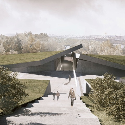 El edificio del Museo está ubicado en el eje que va desde el punto de vista al monumento en forma de vela existente que conmemora a las víctimas del Holodomor, la hambruna provocada por el hombre en Ucrania en 1932-1933.La forma arquitectónica del edificio es la idea de sacar a la luz la verdad deliberadamente oculta sobre el Holodomor (Gran Hambruna). La historia oculta debe ser recordada no solo por las capas tectónicas que cubren el edificio y la intervención arquitectónica que consiste en esconder el cuerpo del edificio debajo del suelo, sino también cambiando el color de la vegetación que crecerá en el techo cubierto de tierra. La entrada monumental al edificio, ubicada desde el lado del monumento en forma de vela, es una puerta que conduce al interior de la tierra que se mostrará la exposición del Memorial.