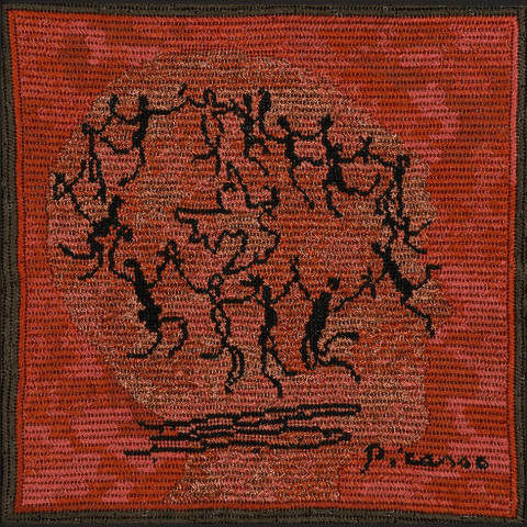 La exposición cuentan con trece obras de petit point, en las que todas son imágenes con referencias a otros artistas. Hay maestros del siglo XX como Pablo Picasso o una colaboración entre Josef Albers y Harry Seidler, así como estrellas del siglo XXI, como Christopher Wool y el colectivo austríaco Gelitin. En medio de estas figuras conocidas están media docena de obras que hacen referencia a las artistas cuyos nombres han tenido un viaje más tortuoso en la historia del arte. Trabajos de Anni Albers, Lina Bo Bardi, Lee Bontecou, José Guerrero, Hannah Höch, Ree Morton o Mira Schendel.