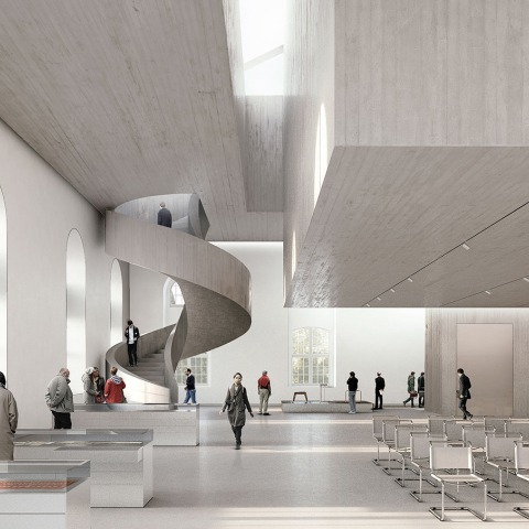 El proyecto de Nieto Sobejano Arquitectos surge de un diálogo entre la memoria y la vanguardia, -representados por el propio edificio y su colección- que se traduce en la inclusión del archivo en un voumen cúbico suspendido, liberando toda la planta baja como espacio público flexible para encuentros, exposiciones, seminarios y conferencias. En palabras del jurado, presidido por el arquitecto Arno Lederer: "La provocación sutil y el juego mental que implica el nombre institucional se entiende como el punto de partida en este proyecto. Un gran volumen de hormigón que flota en el interior de la Blockhaus constituye la pieza central del archivo, un tesoro escondido, como la presencia inevitable del pasado ".