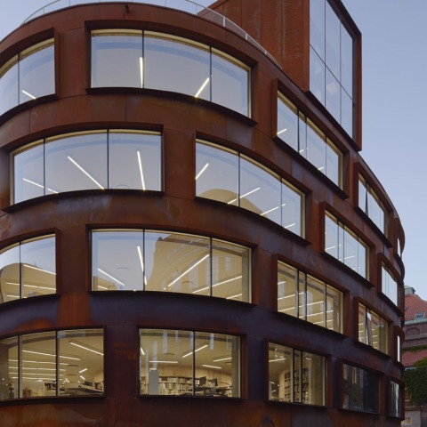 Por primera vez en 45 años, los estudiantes de arquitectura en el Royal Institute of Technology de Estocolmo tienen su propio edificio en el campus - una pieza cilíndrica con la paredes exteriores de acero cor-ten, diseñado por Tham & Videgårds Arkitekter. La escuela KTH de Arquitectura es la primera instalación dedicada a la arquitectura en el campus principal de la universidad desde 1970, cuando fueron trasladados a un edificio en otro lugar. Sin embargo a diferencia de los tradicionales edificios de ladrillo que lo rodean, el nuevo edificio cuenta con una fachada con textura de acero corten pre-oxidado.
