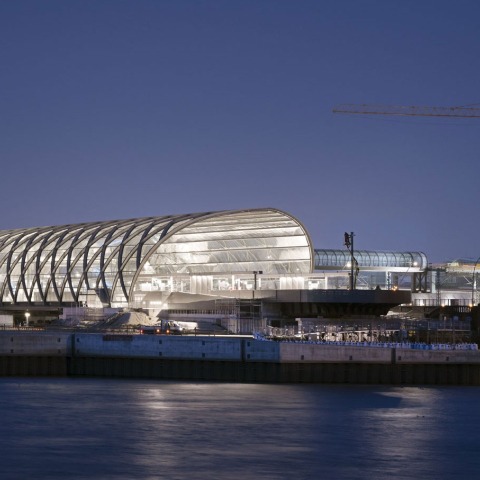 HafenCity es el área de expansión urbana más importante de la creciente metrópolis de Hamburgo. Al formar un centro urbano al final de la cuenca Baakenhafen, el nuevo distrito de Elbbrücken cerrará HafenCity al este. Para conectar el área con el sistema de transporte público local, la línea de metro U4 se ha extendido a Elbbrücken, donde, en combinación con la futura estación de tren de tránsito rápido (S-Bahn), se creará un intercambio atractivo. La estación de metro, el techo de la estación de S-Bahn y el puente peatonal de conexión fueron diseñados por gmp y se construirán en etapas sucesivas.