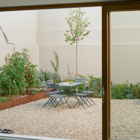 El proyecto se desarrolló durante la pandemia. La vivienda refleja una voluntad de potenciar las reuniones y de ir más allá del determinismo de las funciones, buscando una alegría imaginada. La fachada de la calle permanece inalterada, ofreciendo pistas sobre la intervención. La fachada trasera, fruto de la ampliación, se presenta como nueva, no en oposición a lo existente, sino como una capa más en la historia del edificio. Se explora una renovada conexión con el jardín, como prerrogativa para celebrar lo que en ese momento parecía vital: el sol, la tierra, el agua y el ocio.