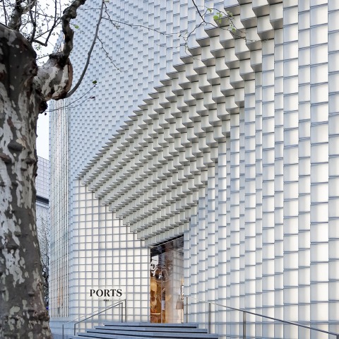 Ubicado en una importante zona comercial en la intersección de Changde Road y Nanjing West Road en Shanghai, se crea una fachada nueva para la tienda insignia de la casa de moda Ports 1961. La fachada es representativa de la visión de futuro de Ports 1961 que reúne su origen y su evolución. El diseño evoca la idea de un accidente geográfico que se asemeja a un iceberg flotando libre en el océano; el edificio ondulado, expandiéndose y contrayéndose, como si se formara por su entorno. La fachada muestra las posibilidades de experimentación del diseño, mostrando la transformación de la forma, material y tecnología, sin dejar de traer el aspecto de las interpretaciones tanto tradicionales como contemporáneas. La grandeza estructural del edificio llama la atención, mientras que su naturaleza ambivalente está cambiando de forma con su entorno.