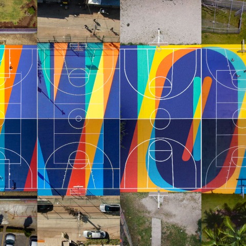 El proyecto “Unión” tiene como objetivo aportar un valor adicional a las canchas, que son el corazón de los barrios. En torno a ellas se articula gran parte de la actividad de la comunidad. Son plazas, estadios, salones de baile y escenarios de conciertos. La intervención nos recuerda que la música y arte son vectores de conexión que traspasan fronteras.