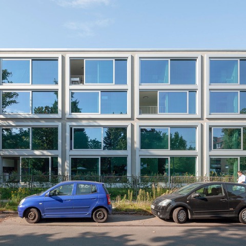 Todas las optimizaciones son parte de una estrategia de costos asimétricos. El objetivo es lograr una calidad excelente e inesperada mediante el uso de "ahorros estratégicos". En el caso del Henry - Koerner - Hall, esto permitió una generosa fachada de vidrio con puertas correderas abatibles de aluminio anodizado, así como espacios vacíos de dos pisos. Esto crea la columna vertebral espacial de los apartamentos y una fachada de alta calidad en el lado de la calle al mismo tiempo, que realza el espacio urbano.