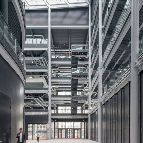 Diseñado para ser abierto y acogedor, los visitantes acceden a través de un atrio de altura completa con vistas a los espacios de trabajo, así como a un nuevo café frente a la plaza. El diseño también genera una sensación de apertura y transparencia entre los diferentes departamentos para crear nuevas oportunidades de colaboración e interacción. El corazón de la sede central es un "centro" de 4.000 metros cuadrados, que se extiende a través de tres niveles vinculados e incorpora estudios, oficinas e instalaciones de producción. El plan incluye un jardín protegido en el techo del centro, que está conectado a un restaurante y ofrece un lugar único para filmar, así como un valioso servicio social para el personal.
