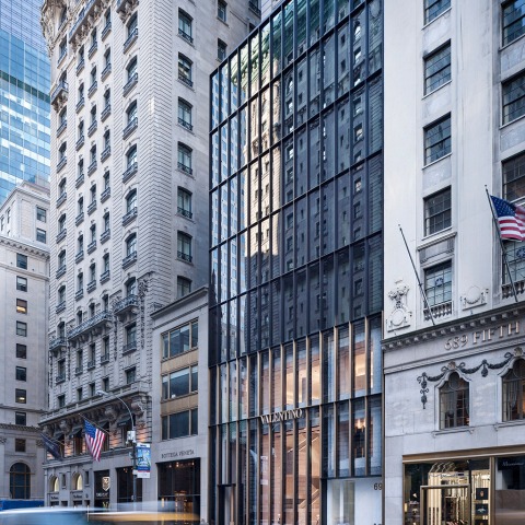 La Nueva Tienda de Valentino se encuentra en la Quinta Avenida, en la antigua Tienda Takashimaya, diseñada por John Burgee y Philip Johnson, que abrió sus puertas en 1993.