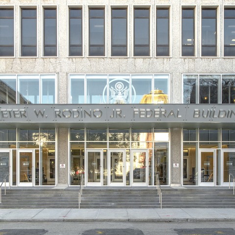 El edificio de la Oficina Federal Peter W. Rodino es una estructura de 16 pisos y 43.500m² que alberga varias agencias gubernamentales, incluido el Centro Regional de Servicios de Ciudadanía e Inmigración de los Estados Unidos, la Administración de Servicios Generales y la Oficina del Fiscal de los Estados Unidos.