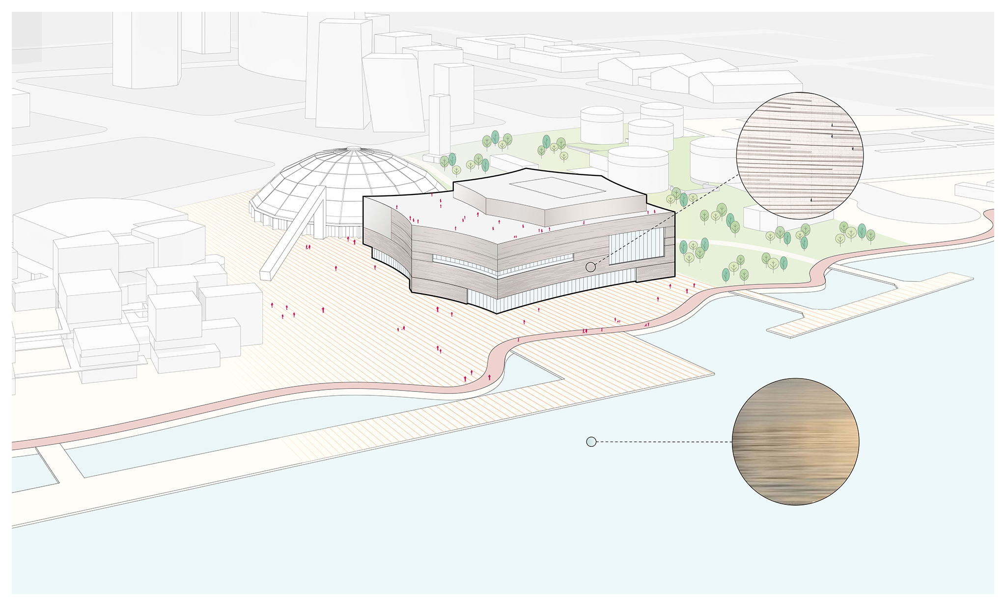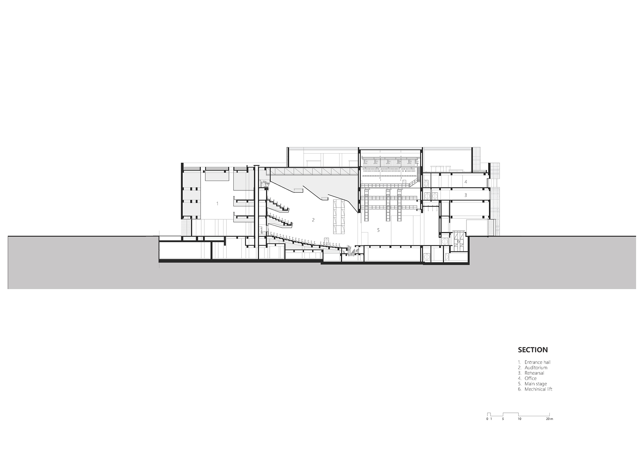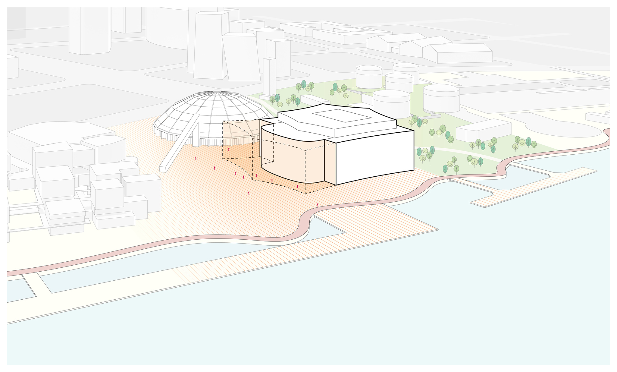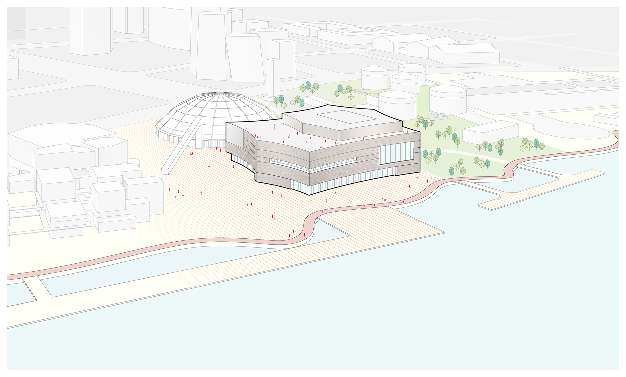 Esta obra proyectada por Schmidt Hammer Lassen Architects supone una importante aportación para la zona, tanto por su programa como por su volumen. El nuevo edificio presenta un marcado carácter tectónico, fachadas curvas y un programa interior que alberga un auditorio principal de 1.600 butacas y un teatro de caja negra más íntimo, con 200 butacas para representaciones experimentales.
