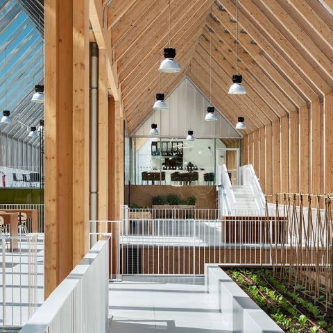 La extraordinaria cadena de producción alimentaria de éxito, fusión de tradición e innovación, que nos convierte en referencia esencial en mercados y cocinas internacionales, tiene un papel relevante en la generación del pabellón, aplicando una materialidad diferenciada a cada una de ellas de acuerdo con esta dualidad.