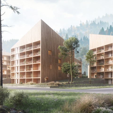 La idea principal de la instalación diseñada era partir del diseño actual de los hoteles contemporáneos en los Beskides de Silesia y colocar la instalación en el paisaje de tal manera que, al tiempo que cumplía con el extenso programa, no dominaría el cambio de escala del contexto. del lugar y la belleza del paisaje circundante. Por este motivo, decidimos partir de la forma de un edificio concentrado en un bloque fuerte a favor de una arquitectura equilibrada de un complejo de pabellones hoteleros divididos en módulos. La principal inspiración para la formación del equipo fue la referencia a las cabañas de montaña de madera que se levantan libremente en un claro de montaña. Por ello, hemos propuesto la arquitectura de los pabellones como una síntesis moderna de la cubicación de la arquitectura regional de madera caracterizada por inclinaciones, maderas y proporciones, y vinculándola funcionalmente con un piso subterráneo cubierto con un techo verde en forma de prado multifuncional.