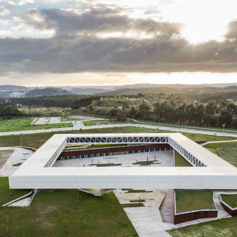 El proyecto construye un nuevo espacio, mínimo en su relación con el paisaje, con muchas referencias a la memoria histórica de la cultura portuguesa, y una imagen muy clara. La forma cuadrada es a la vez simbólico y abstracto, y los colores blanco, la primera planta, de color marrón en el vínculo de la planta baja con el suelo y el cielo. El edificio es enorme, si revisas su superficie construida, sin embargo, su impacto en el paisaje es mínimo y ayuda a construir una nueva gran paisaje antrópico.