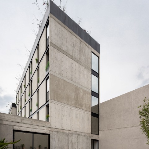 El proyecto se compone de una planta baja donde el programa público abraza los patios creados generando diferentes sensaciones de serenidad y permite que la interacción entre los residentes sea obligada. Posteriormente el programa privado se ubica en los siguientes 4 niveles rematando con un rooftop con vistas privilegiadas a la ciudad.