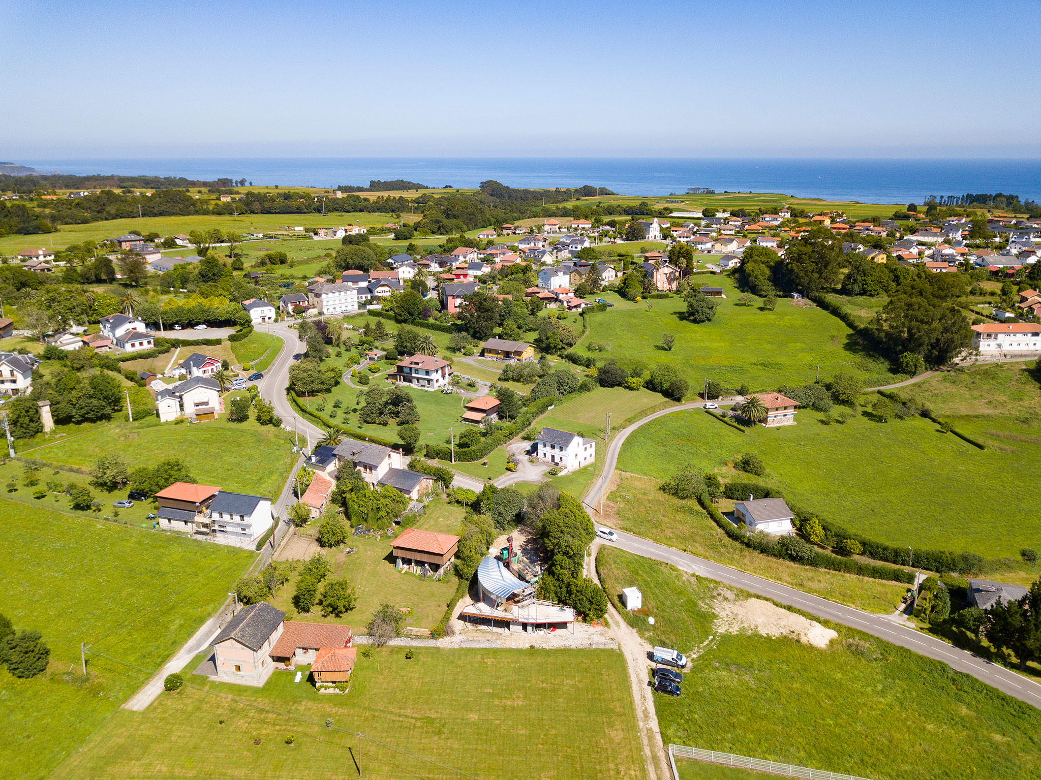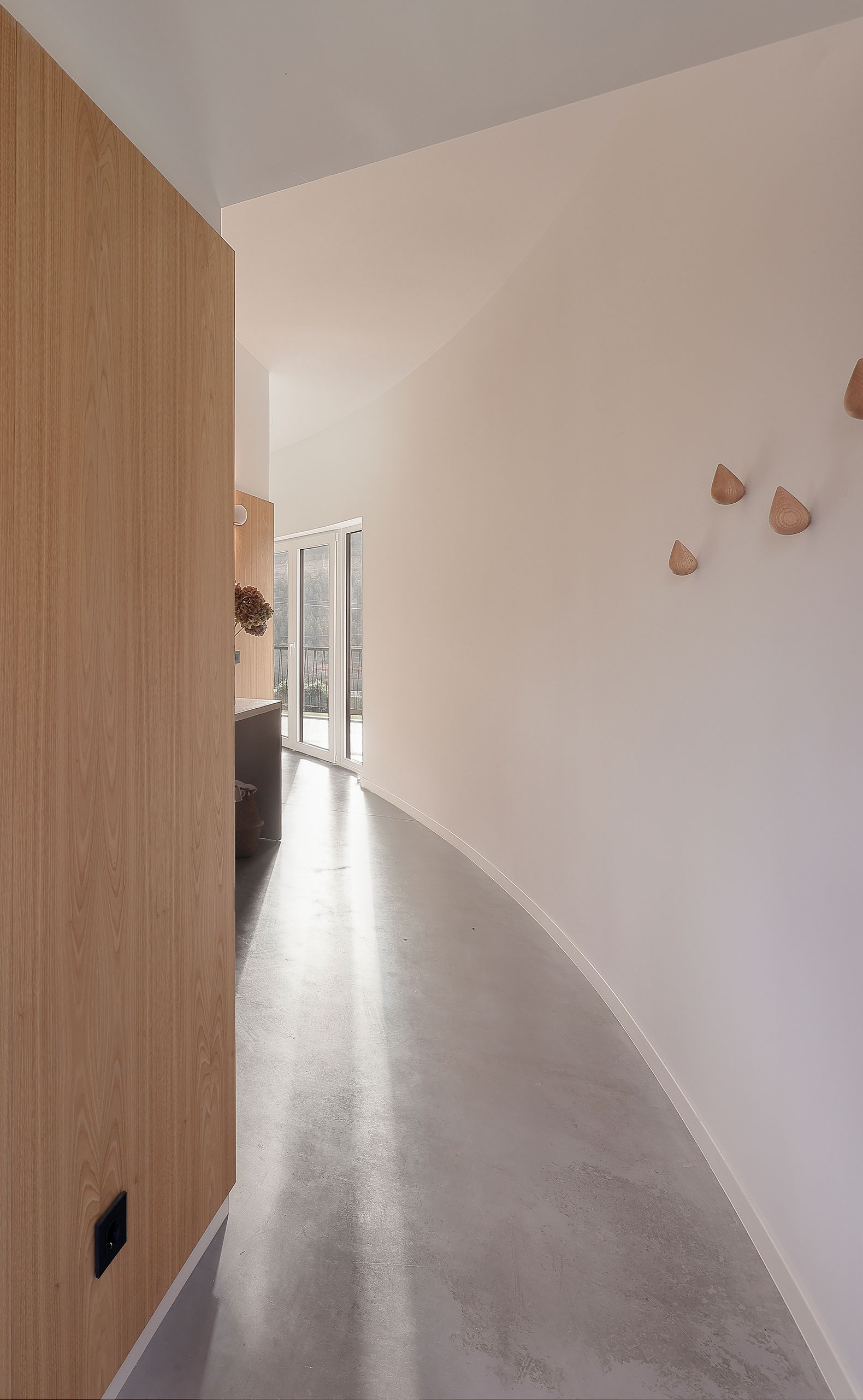 La intervención plantea una conexión armoniosa entre interior y exterior a lo largo de un camino. Este trayecto comienza en un pequeño vestíbulo, un umbral hacia el corazón del hogar. Es aquí donde la arquitectura se vuelve permeable. Una doble transparencia en el eje norte-sur amplía el espacio que comparten salón y cocina. El interior se convierte así en una transición entre el jardín y las verdes montañas. La vivienda, en lugar de interrumpir el paisaje, lo enmarca y permite que sea contemplado a través de ella. El recorrido finaliza en la zona más privada: el dormitorio principal, orientado hacia la inmensidad del horizonte. Desde esta posición elevada, la casa supera los obstáculos circundantes y proyecta la mirada hacia su destino final: el mar Cantábrico.