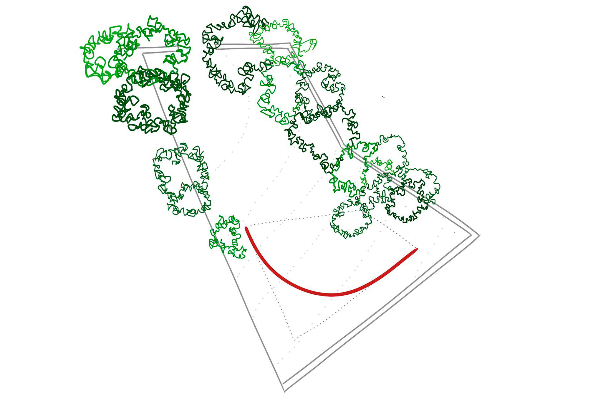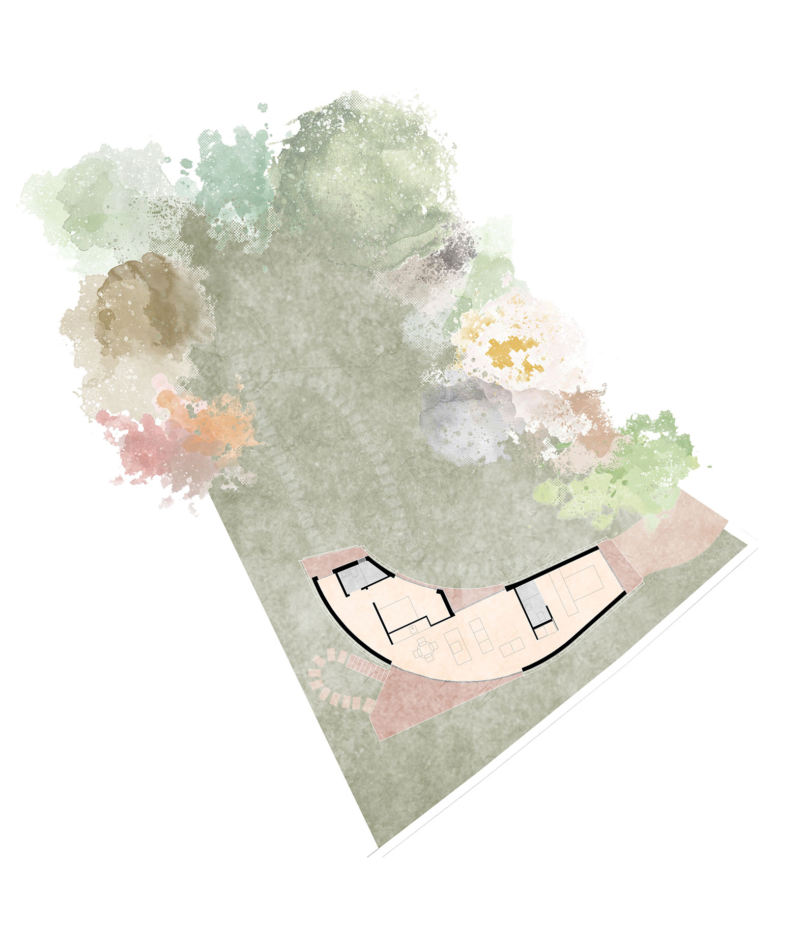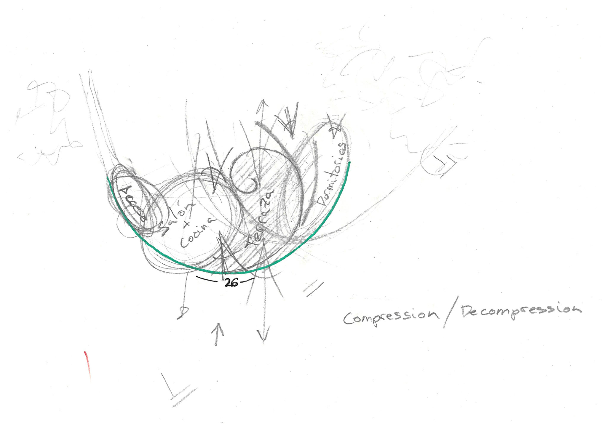La arquitectura se convierte así en una coreografía de sensaciones. Un viaje a través de las escalas del paisaje, enlazando lo cercano con lo lejano. La forma responde a esta narrativa, impulsándose hacia el mar como un pez que contrae y relaja sus músculos para avanzar. ¿Por qué este viaje? Como en la película de Tim Burton, este proyecto ilustra que la verdadera vida no se encuentra en un paraíso estático y sin desafíos (el jardín interior), sino en el viaje a través del mundo real, con sus complejidades (la carretera, el “ruido” externo, los retranqueos obligados...) Conformarse con una “perfección” ilusoria es dejar de vivir plenamente. La casa no quiere ser un gran pez en una pecera y decide saltar al mar.