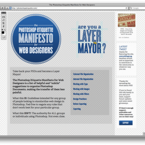 ¡Qué fantástica iniciativa: The Photoshop Etiquette Manifesto para los diseñadores web es una lista de sugerencias útiles e inteligentes para organizar los documentos de Photoshop, haciendo que la transferencia sea menos dolorosa. ¿Eres Layer Mayor?