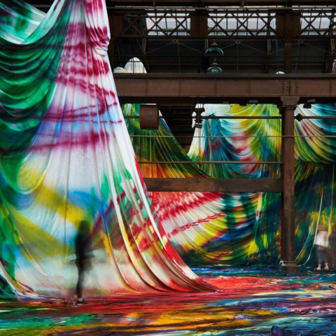Pintando directamente sobre la arquitectura existente, sus interiores y paisajes con grandes trozos de tela, sobre montículos de tierra y losas de hormigón. Grosse envuelve Carriageworks con más de 8,000 metros cuadrados de tela colgada, anudada y desplegada a través de los elementos arquitectónicos del edificio. El público invitado tiene la oportunidad de sumergirse en el gran lienzo de Katharina Grosse.