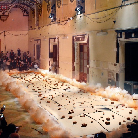 El Salón fue transformado más tarde en un museo militar. Para Cai Guo-Qiang, la creación de pinturas de pólvora en el Salón de Reinos se convierte en una obra in-situ, que viaja a través del tiempo, revisita las sombras del pasado distante y desafía la imaginación y creatividad del presente.