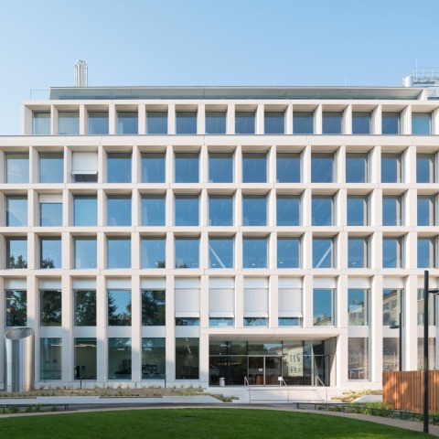 A pesar de esta organización interna flexible, la poderosa imagen de la fachada le da al edificio un sentido de continuidad y atemporalidad, y por lo tanto, sostenibilidad. El desarrollo de los elementos de hormigón prefabricados de secciones transversales ortogonales a cónicas es un dispositivo simple para crear una estructura de fachada dinámica que, basada en la repetición y la variación y reforzada por la perforación, ofrece vistas únicas desde cada oficina. Es en estos elementos paramétricos dónde el diseño y la función del edificio se convierten en uno.
