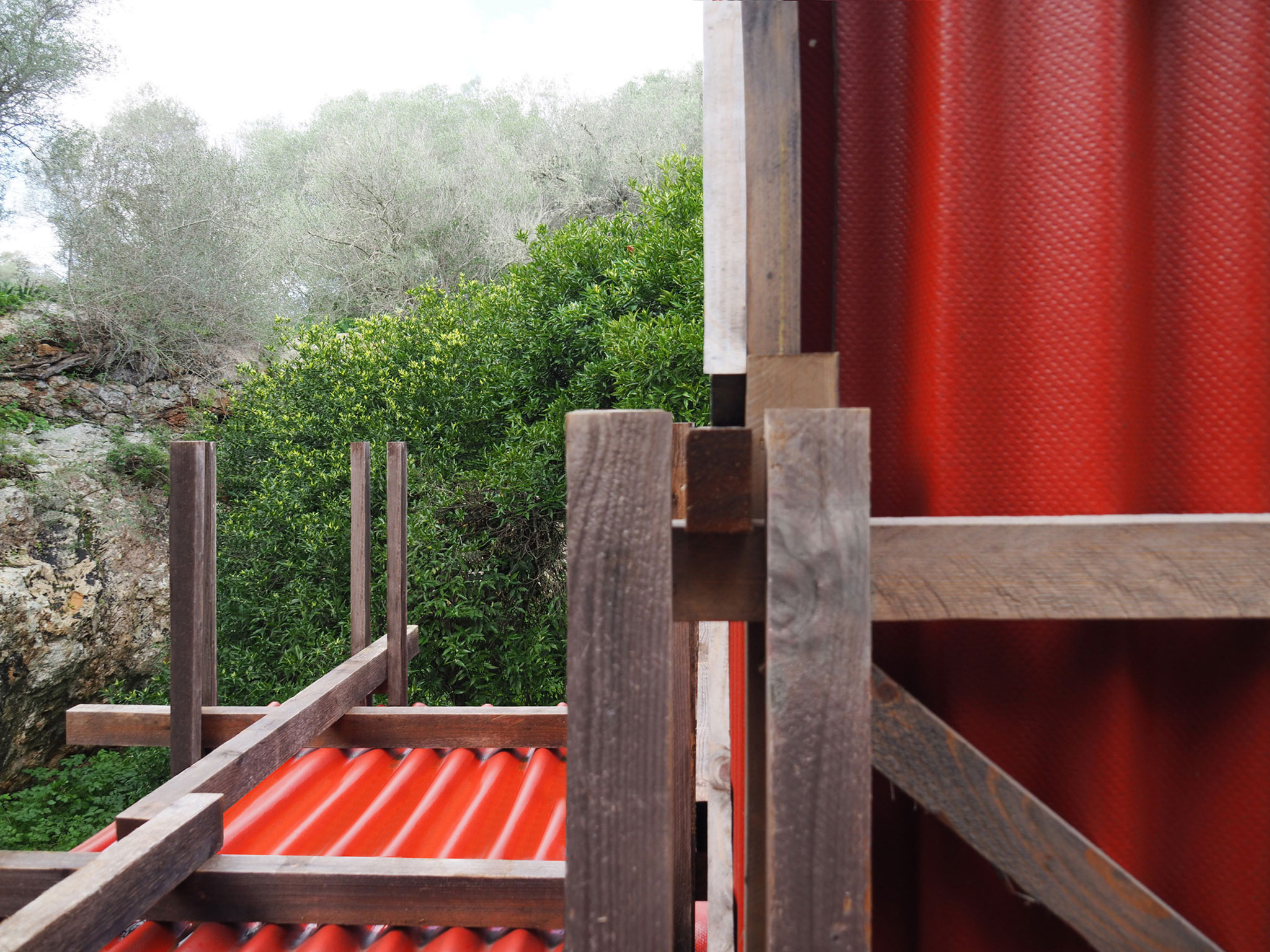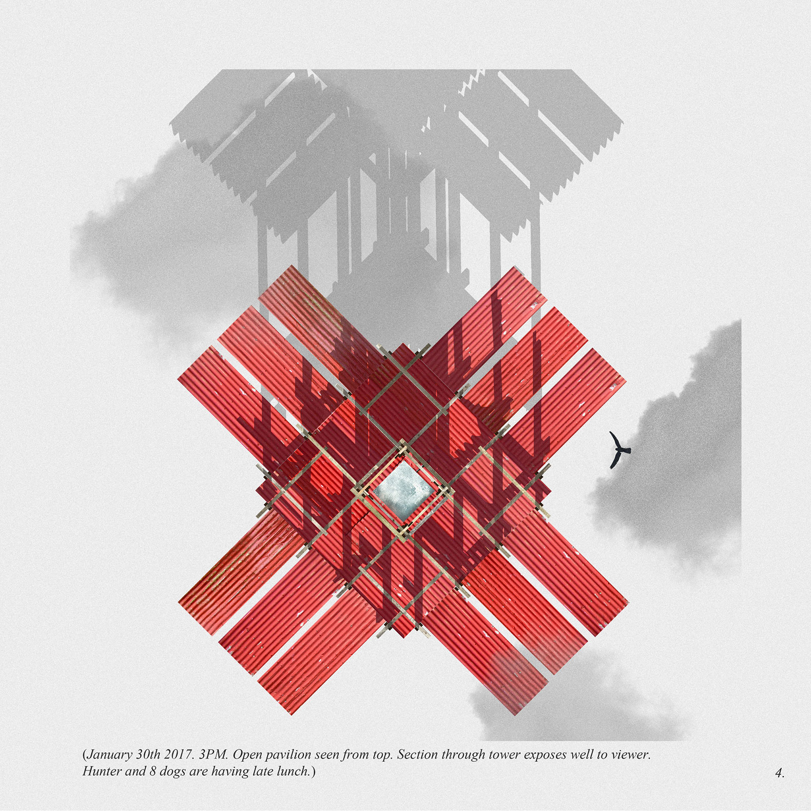 La construcción de Gartnerfuglen Arkitekter + Mariana de Delás está compuesta por una rejilla de 3x3 metros hecha con marcos de madera reutilizados. Una torre retráctil central se impulsa desde el medio de la estructura, manteniendo el bien protegido cuando está cerrado y accesible cuando está en uso.