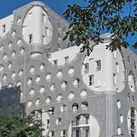 El conjunto de dos edificios, el Edificio A en el Quai Marcel Boyer y el Edificio B en la Rue François Mitterrand, busca una mezcla armoniosa pero no repetitiva de fachadas, afirmando al mismo tiempo la presencia del Sena y el movimiento tradicional de las gabarras, mediante la incorporación de aberturas redondas aplicadas de diferentes maneras a lo largo de las fachadas, según el flujo del agua.