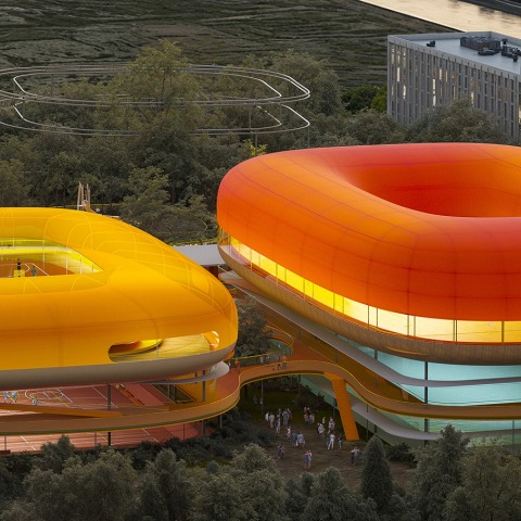 En un contexto urbano dominado por desarrollos de gran escala, el proyecto realizado por SelgasCano se resume en una secuencia de volúmenes orgánicos de poca altura que se funden en el paisaje. Inspirados en los pueblos acuáticos tradicionales chinos, los diferentes pabellones se encuentran inmersos en la vegetación, enfatizando la transparencia, la apertura y la conexión con el entorno natural.