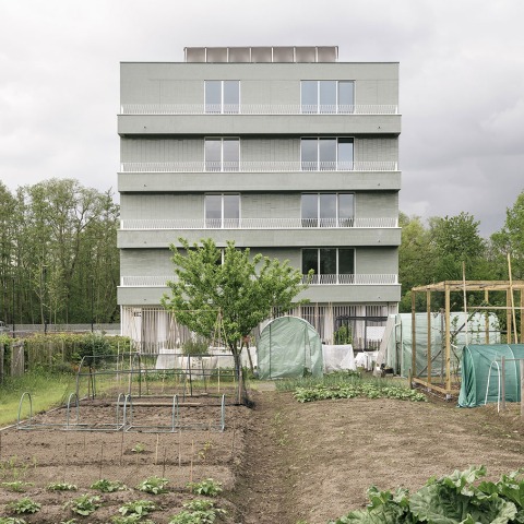 El pequeño volumen bajo tiene cuatro plantas y alberga 8 pisos dúplex con jardín privado y 8 pisos con grandes terrazas. El volumen superior tiene cinco plantas y alberga 24 viviendas. Los dos edificios están separados entre sí por una plaza interior común. Todas las entradas se abren a esta plaza central. Los jardines tienen una entrada trasera a la que se accede por un callejón ajardinado. Bajo la plaza y los volúmenes hay un aparcamiento subterráneo y un cobertizo para bicicletas.