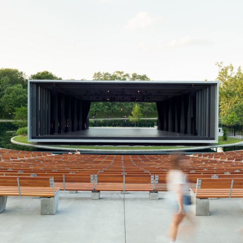«Me gustan las capas del material que crean los lados del escenario y la forma en que enmarca las vistas. Es muy ligero: lo ves de diferentes maneras a medida que te mueves a su alrededor. No es una estructura imponente, pero ocupa su lugar dentro del parque de una manera muy natural y cómoda. Es modesto, pero tiene presencia». Michael Moxam, jurado de los premios Canadian Architect Awards.