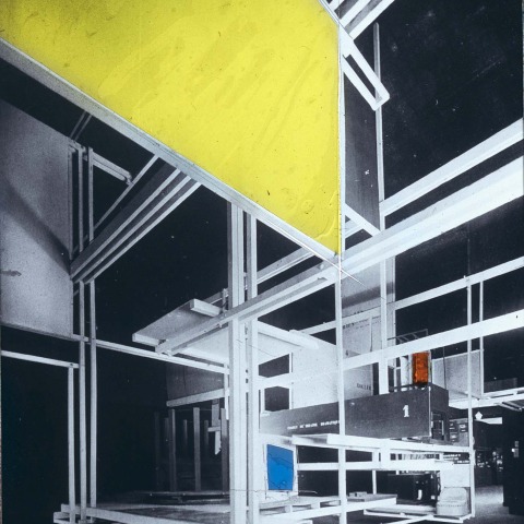 París 1925: Josef Hoffmann invita a Frederick Kiesler a diseñar la sección sobre teatro austriaco en la Exposition Internationale des Arts D coratifs et Industriels Modernes. Sin embargo, se limita a utilizar la arquitectura de la exposición como pretexto para desarrollar una monumental escultura geométrica abstracta que se encuentra suspendida del techo. Además de su función real como soporte para los elementos de la exposición, la emplea principalmente como una visualización a modo de modelo de su idea de una ciudad del futuro que flota libremente, que propaga, con gran extravagancia mediática, como la Ciudad en Espacio.