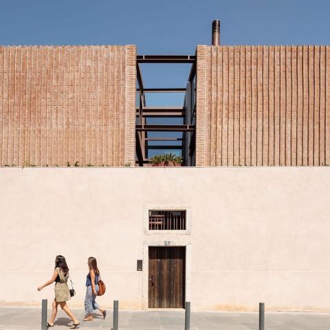 La casa crece ocupando antiguos muros entremezclando patios y huecos de terrazas. Una nueva estructura de ladrillo consecuencia de la abstracción de un volumen en forma de acordeón, que permite formas interesantes de iluminar el interior.