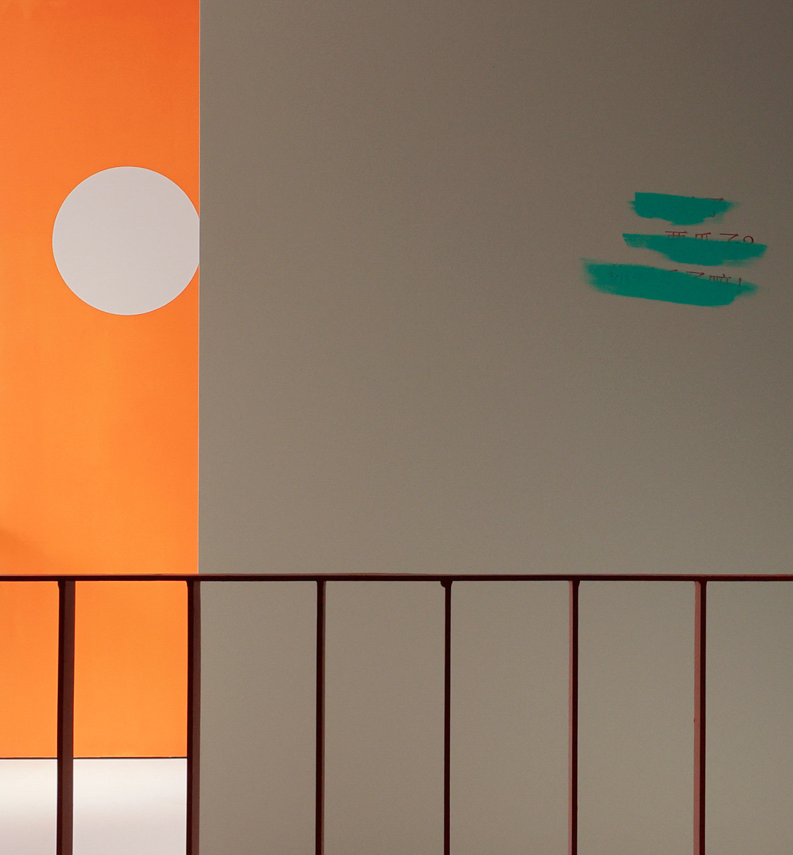 El diseñador cree que prácticamente cualquier objeto encontrado puede ser tratado como una obra de arte, como la pequeña escoba de pasto pegada con cinta adhesiva a la pared del pasillo que conduce desde el área de entrada a la exhibición principal y los espacios interactivos. El pasillo, parcialmente iluminado por una franja de ventanas bajas a nivel del suelo conectadas al área de trabajo, también alberga una serie de "instalaciones" que introducen pintura y materiales de construcción cotidianos, colocados sobre bloques de hormigón o fijados a la pared y cubiertos con un fina capa de plástico transparente. El diseñador quedó impresionado por las cualidades estéticas del plástico utilizado por los trabajadores durante el proceso de construcción, y decidió introducirlo como superficie de contraste, con los objetos debajo pintados en diferentes tonos pastel.