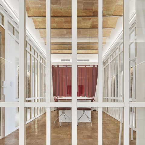SCOB lee y reinterpreta algunos de los recursos estéticos de la época, como los dibujos geométricos en artesonados y pavimentos, para la reorganización de los espacios y la puesta en valor de la fachada patrimonial que da a la Plaza Cataluña. Esta estrategia también se utiliza para sacar el máximo provecho de las alturas libres y para redescubrir las estructuras originales a través de unas nuevas «ventanas interiores». Asimismo se han recuperado las columnas, las carpinterías del patio y las puertas de acceso, los únicos elementos originales que quedaban.