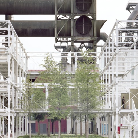 Inessa Hansch organiza una estructura transitable que facilita las condiciones que fomentan los intercambios y el compromiso de los estudiantes. Los belvederes generan espacios de reunión pública a 12 metros de altura de los restos del alto horno, lo que permite a los estudiantes y visitantes contemplar las estructuras de acerías abandonadas desde un lugar raro, ofreciendo la oportunidad de captar el gigantismo del sitio industrial reprogramado y reactivado.