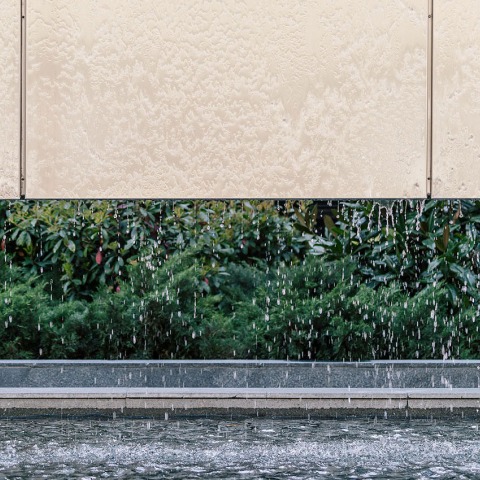 Sin necesidad de programa o función, este pabellón improvisado actúa como una parada o un imán: un lugar que ofrece sombra y protección; Agua y descanso. Una puerta hacia un jardín y un escudo hacia el ruido. Un signo ambiguo, gravitando sobre los ciudadanos y el tráfico, y en el que los conductores aburridos atrapados en los atascos de tráfico pueden encontrar un momento de sorpresa al descubrir su propio reflejo.