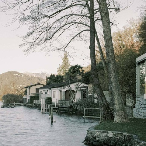 Con vistas al lago de Lugano, entre los bosques y la colina a sus espaldas, nos llamaron para transformar un edificio existente, construido en los años 50. En la propiedad algo compacta, se pueden ver dos espacios construidos en extremos opuestos: una casa de vacaciones en un lado y un muelle con garaje en el otro, junto a dos grandes árboles. El concepto es simple, una serie de espacios optimizados para un breve descanso, un momento de descanso, similar a la experiencia de realizar una estancia privada en un hotel.