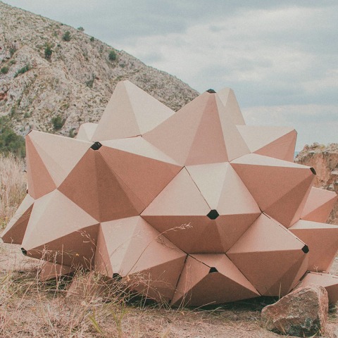 Helix puede ser transportado y ensamblado por una sola persona, atributos que le dan carácter de "concha de caracol" en la que se puede configurar un espacio individual. Su envolvente está formada por pirámides de cartón con orificios en sus vértices que permiten una visión parcial desde el interior, una oportunidad para fijarse en los pequeños detalles del entorno y de la naturaleza.