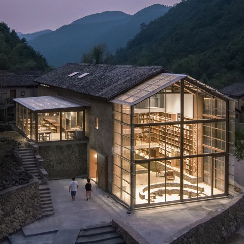 El hotel cápsula y librería en Village Qinglongwu está ubicado en los bosques profundos de Tonglu en la provincia de Zhejiang. Era una casa antigua de estructura de madera y paredes de barro, con una superficie de 232m² y una altura de 7,2 metros. Atelier tao+c rediseñó y regeneró este antiguo edificio insertando un hotel cápsula con capacidad para 20 personas, una librería comunitaria y una biblioteca.