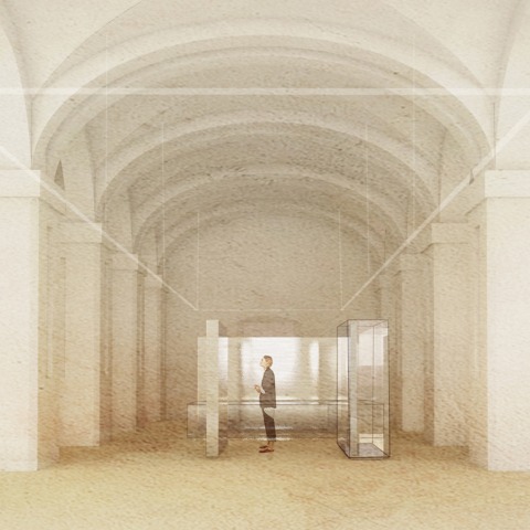 Visualizaciones. Rehabilitación y museografía de la Sala Cero del Museo de la Universidad De Sevilla por Reina & Asociados Estudio de Arquitectura SLP.