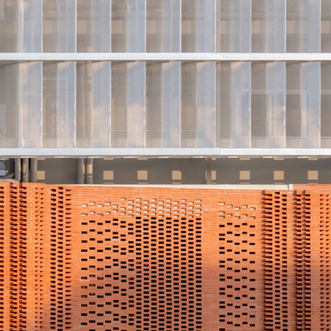 En algunas secciones del muro exterior, se omitieron los ladrillos durante el proceso de colocación para crear patrones interesantes. Esta característica se empleó para permitir que la brisa que fluye sobre el depósito de agua en la parte trasera de la instalación entre y ventile el comedor de los trabajadores. Inmediatamente fuera del comedor y junto al depósito, se crearon espacios para que los trabajadores pudieran relajarse y disfrutar de las vistas.
