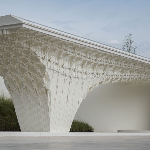 En otra zona, se creó un «jardín de columnas» con columnas de cinco tipos de capiteles apiladas unas sobre otras y luego dispuestas en cuadrícula. Se trata de una zona para que los visitantes exploren y tomen fotografías. Entre el jardín de columnas y los nodos secuenciados hay un patio polivalente, que también contiene la escalera y el balcón para que la novia lance el ramo después de la boda.