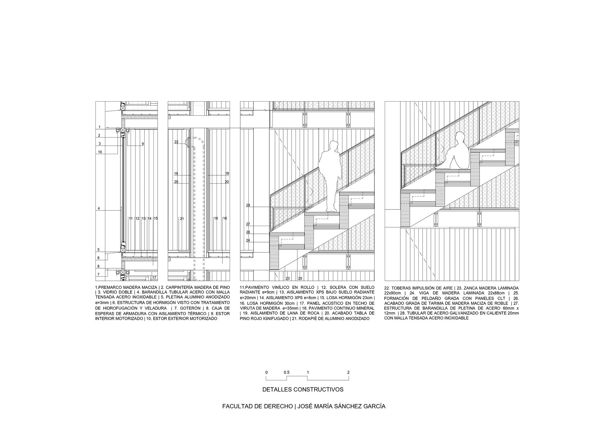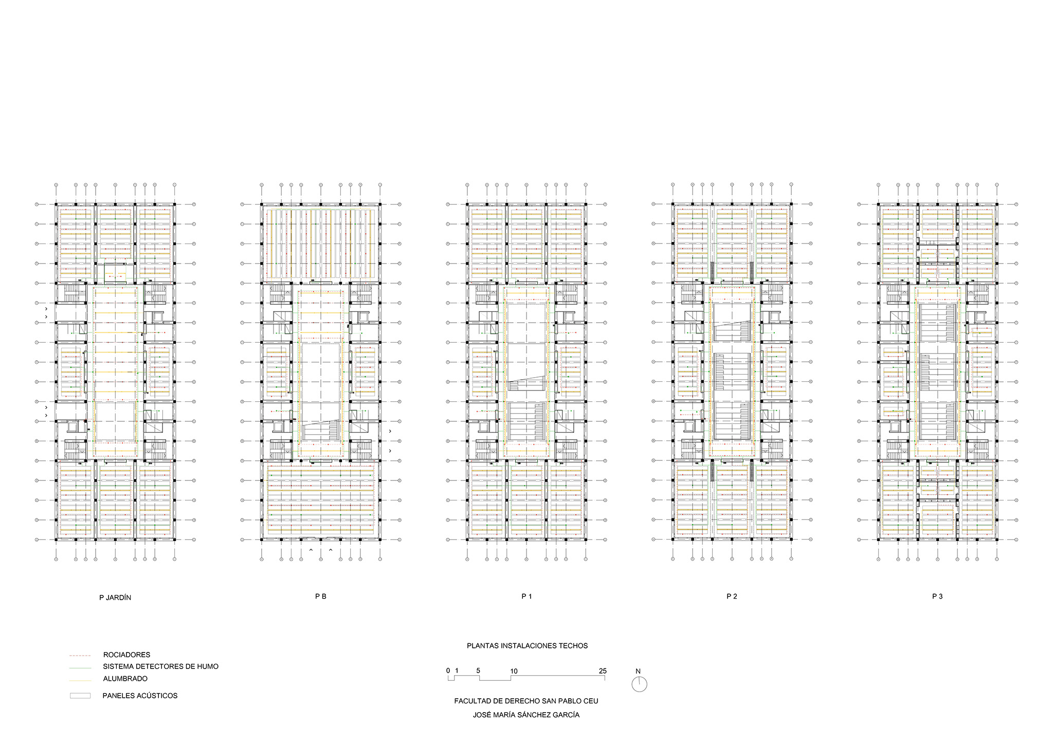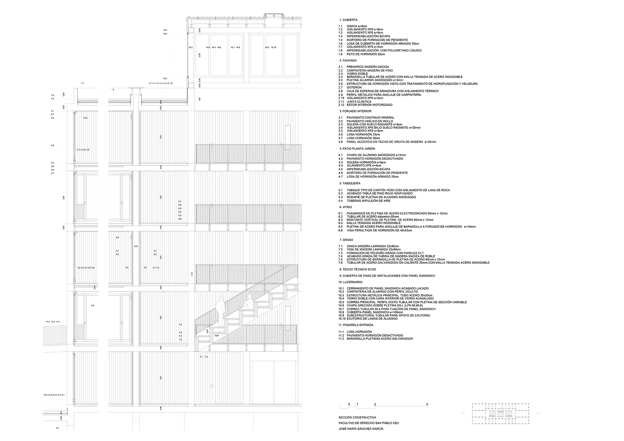 En conjunto, el edificio para la Facultad de Derecho CEU San Pablo se presenta como un gran contenedor que articula en su interior la precisión de los elementos estructurales, la fluidez de las pasarelas y la presencia de espacios de apoyo concebidos para estimular el encuentro y la interacción de toda la comunidad educativa.