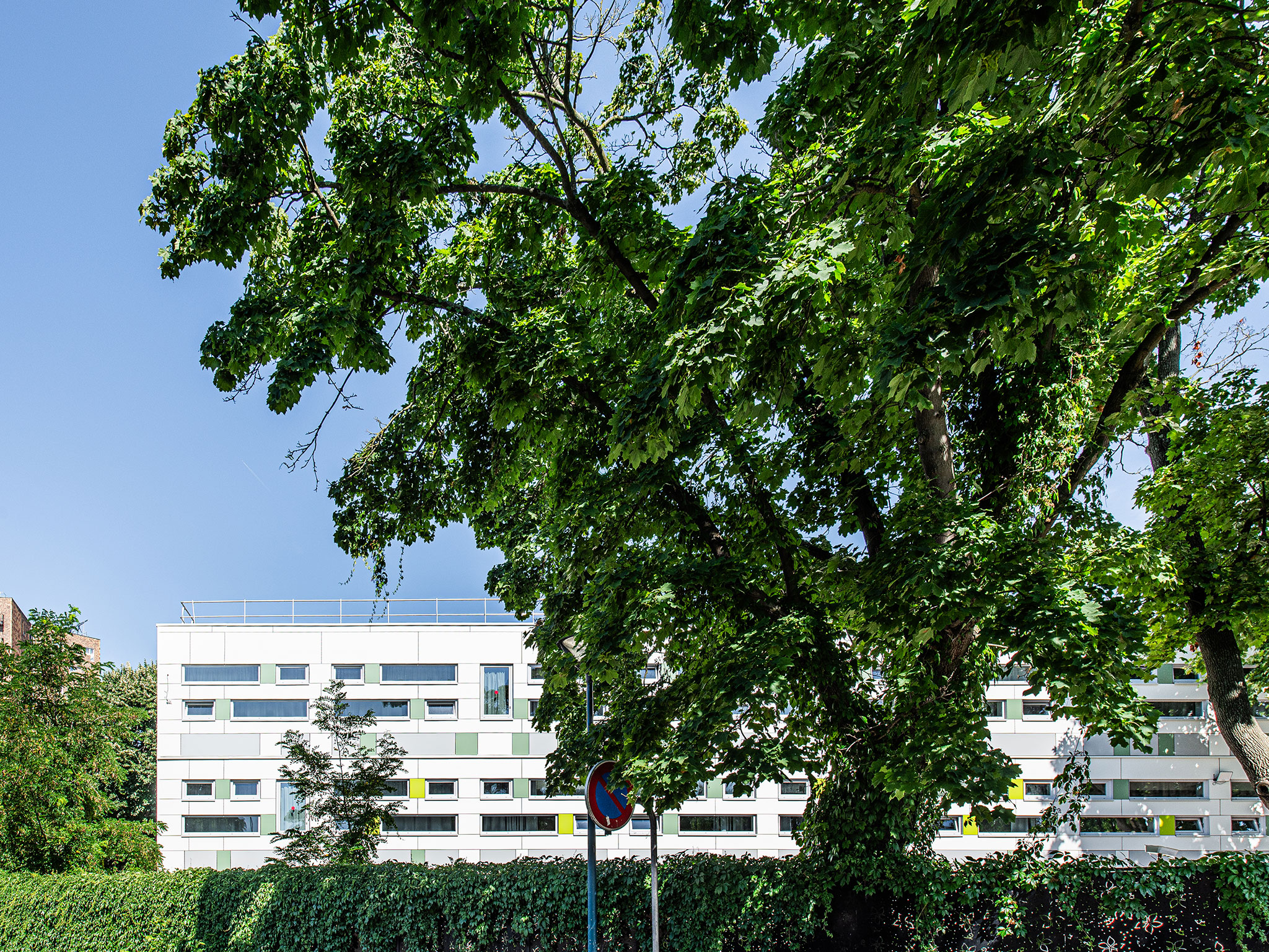 Los cuatro objetivos principales del proyecto fueron mejorar el rendimiento energético del edificio, garantizar condiciones de vida saludables y confortables, y realzar la arquitectura original de Émile Aillaud. Las obras se llevaron a cabo manteniendo la actividad en el lugar, garantizando la seguridad y el confort de los usuarios durante la duración del proyecto. Para lograr estos objetivos, la instalación de aislamiento térmico en las fachadas exteriores con fibra de madera contribuyó a una reducción significativa de las pérdidas de calor. El establecimiento ahora está equipado con una caldera de condensación de gas, una red de calentadores de agua y radiadores modernos, lo que garantiza un confort térmico óptimo en todas las estaciones. Se instaló un sistema de ventilación de doble flujo con recuperación de energía para mejorar la calidad del aire interior y, al mismo tiempo, controlar el consumo energético. La combinación de rendimientos energéticos y ambientales resultó en la transición del edificio de una etiqueta energética E a una etiqueta B. También se sustituyó toda la carpintería para reforzar el rendimiento energético y mejorar la insonorización.